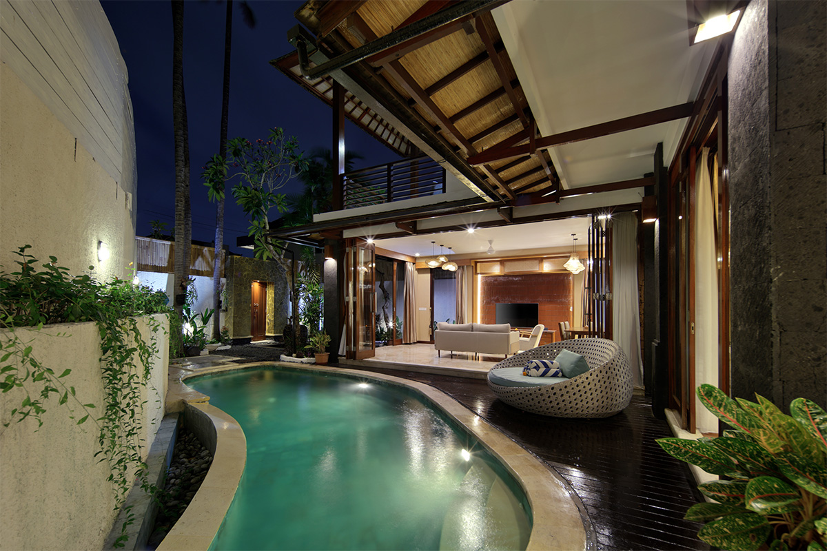 Villa terbaik di Bali dengan private pool ini memberi nuansa tropis nan mewah yang membuatnya jadi favorit turis di daerah Canggu. Tersedia two bedroom villa dengan connecting pool, cocok untuk keluarga yang mencari kenyamanan sekaligus tempat menginap privat untuk menghabiskan waktu liburan di Bali.
